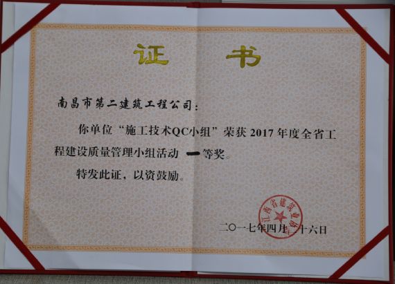 技術(shù)質(zhì)檢部貫徹公司質(zhì)量標準化管理精神,以切實提高工程質(zhì)量為目標,積極開展全面質(zhì)量管理技術(shù)攻關(guān)活動,所撰寫的《提高GC泡沫水泥保溫板外墻外保溫施工質(zhì)量 》QC課題成果,榮獲“2017年度全省工程建設(shè)優(yōu)秀質(zhì)量管理小組活動一等獎”。