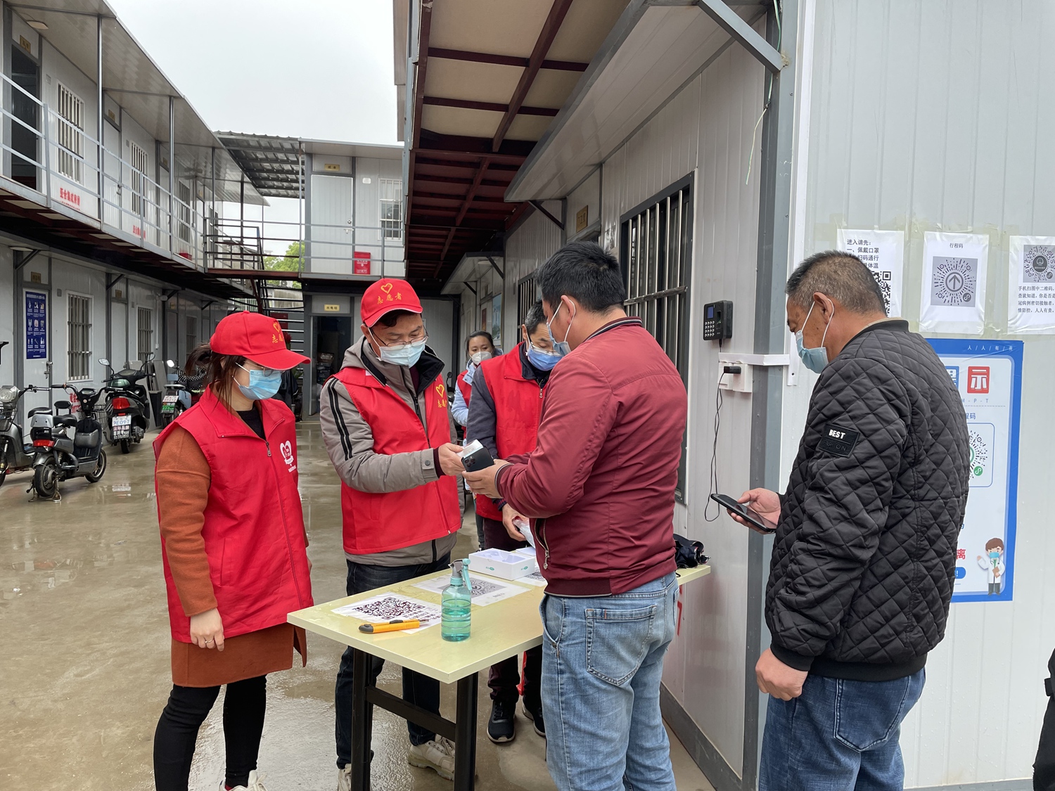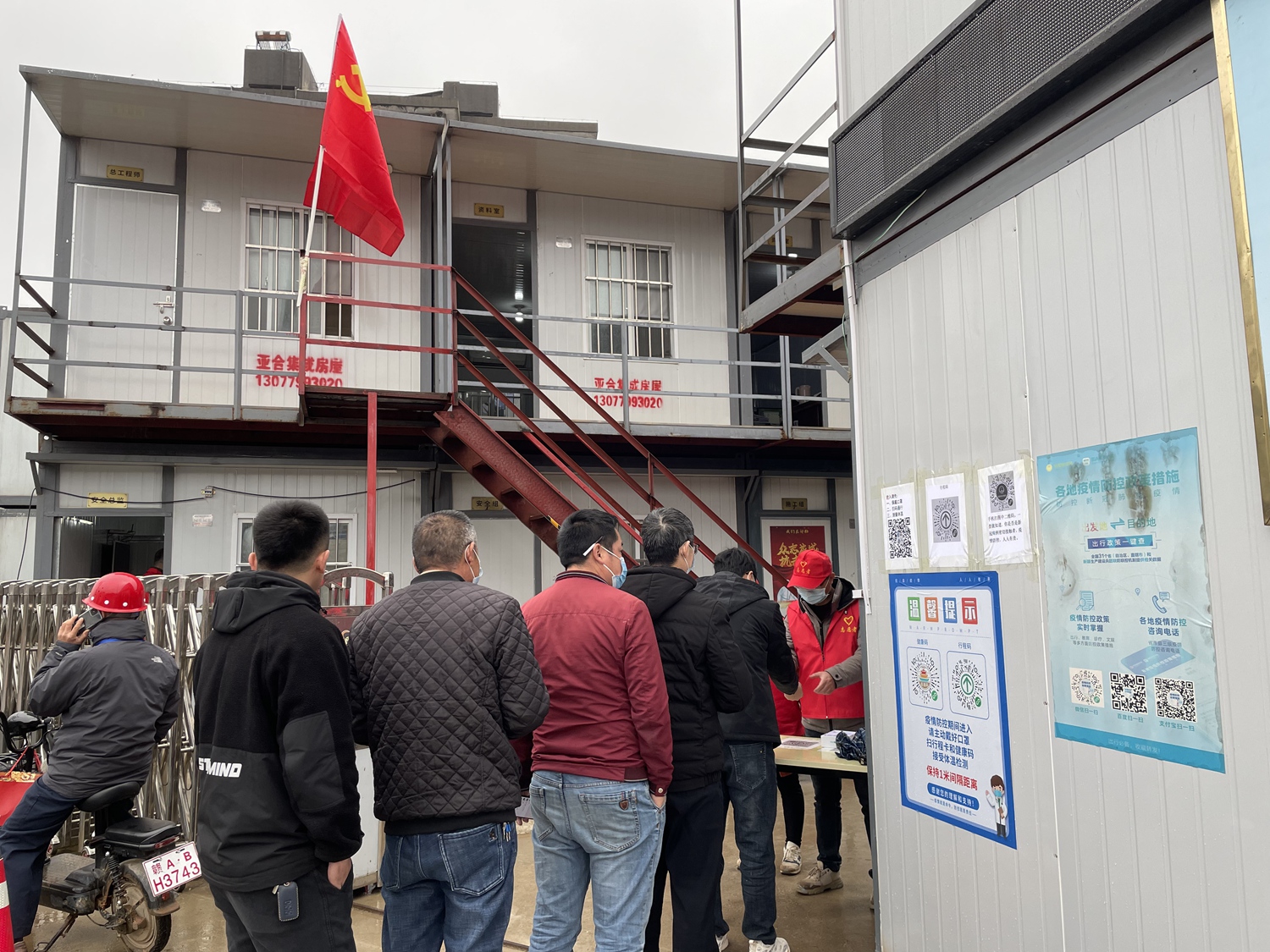 (繩金塔張家山社區(qū)) 一個支部就是一個堡壘。公司第一黨支部將工作前移到疫情防控一線,以黨建共建對象張家山社區(qū)為點,組織黨員和入黨積極分子深入社區(qū)防控一線,開展志愿者活動,對居民進行防控知識的宣傳教育,在核酸檢測點,幫助疏導交通、維護秩序,指導居民檢測,動員廣大居民積極參與全員核酸檢測,以實際行動投入到防控一線。公司繩金塔民俗風情街工程項目臨時黨支部堅持一手抓疫情防控,一手抓工程項目建設(shè)。成立了黨員先鋒崗,主動扛起防疫責任,在做好工地防控設(shè)施圍護的前提下,堅持每天做好進場人員的體溫檢測,教育工地人員注意個人防護,定時對工地進行殺菌消毒。從而,保證了工程項目在疫情期間不停工、不停產(chǎn) ,體現(xiàn)了黨旗在防控一線高高飄揚。
