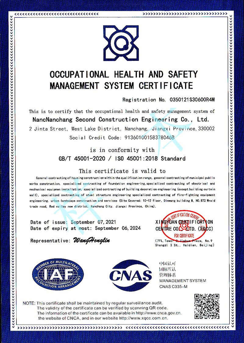 職業(yè)健康安全管理體系認證證書